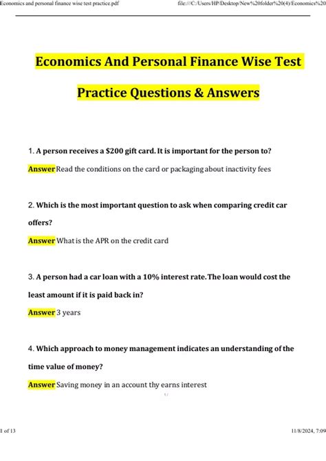 Read Answers To Personal Finance Test Plato Web Doc